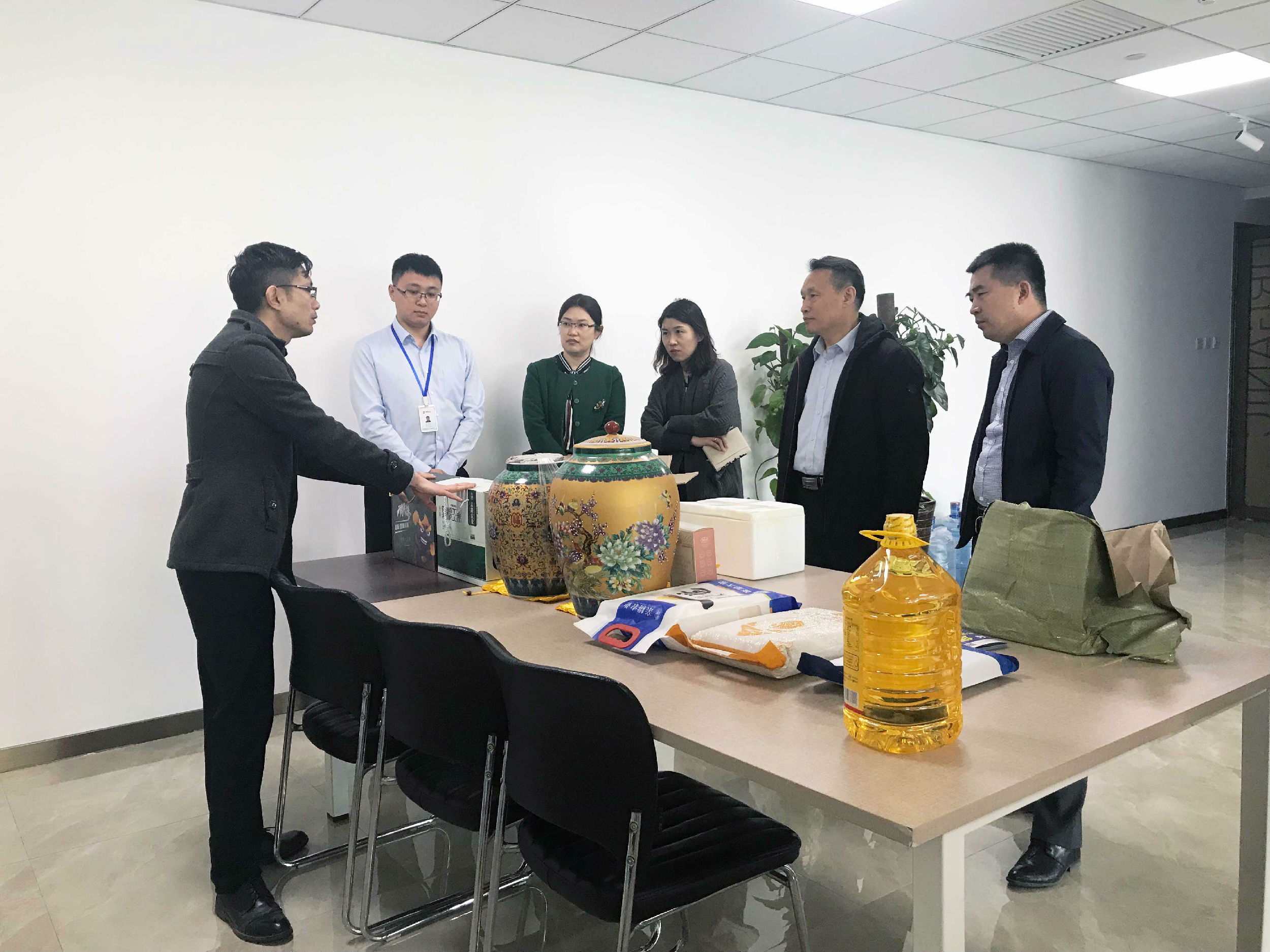 雷守君董事長(zhǎng)熱情的接待了李正權(quán)董事長(zhǎng),就產(chǎn)業(yè)園區(qū)作了詳細(xì)介紹,并帶李正權(quán)董事長(zhǎng)參觀了園區(qū)代表企業(yè)羽麥科技、聚發(fā)財(cái)電子商務(wù)及聚良田等。